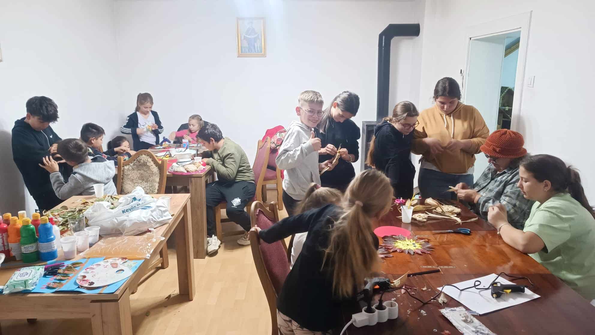 „ În urmă cu o lună de zile, la casa parohială am inceput atelierul de toamnă , în cadrul căruia micuții noștri au pictat,desenat și au creat ornamente specifice sezonului. Cu imaginația si talentul lor, fiecare copilaș a pus suflet în toată practica de la acest atelier. Toate lucrările au fost duse la expoziția din fața bisericii, iar cei doritori au putut să își achiziționeze din frumoasele ornamente.”, a declarat pentru protopopiatulagnita.ro, părintele Daniel Crişcă
